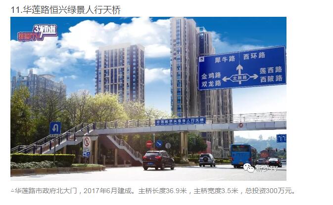 年來,市委、市政府加大市政基礎設施投入,大力推進人行天橋建設。截止2017年底,中心城市共興建20余座人行天橋。