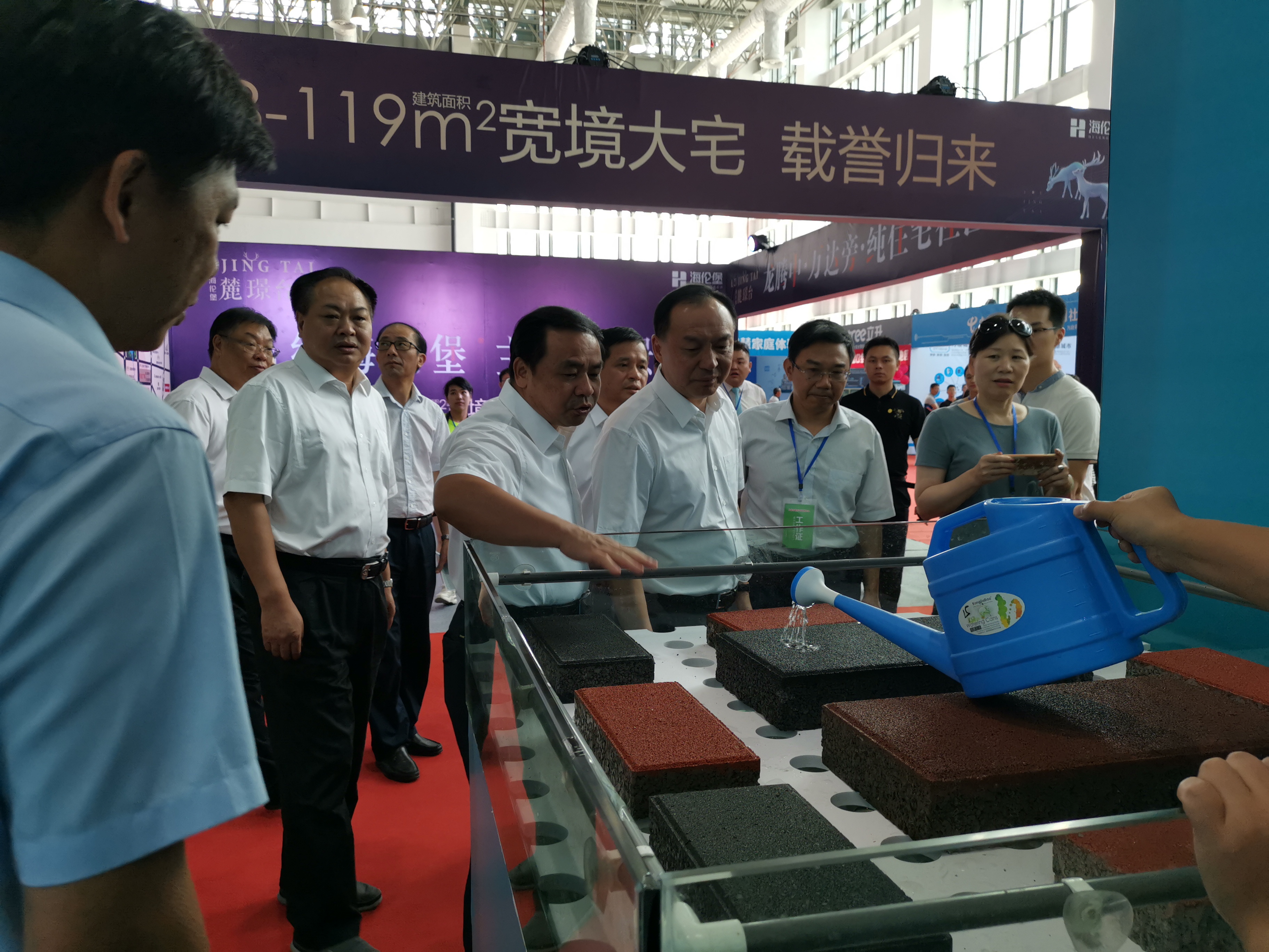 8月16日—18日,龍巖天潤(rùn)龍城新型建材有限公司參加龍巖市建筑產(chǎn)業(yè)發(fā)展大會(huì)建筑新型材料展,展會(huì)上公司發(fā)放了公司產(chǎn)品宣傳冊(cè),播放公司產(chǎn)品宣傳片,擺放公司產(chǎn)品樣品并在現(xiàn)場(chǎng)進(jìn)行透水效果演示,市委許維澤書(shū)記一行在巡視展館中饒有興致地觀(guān)看聽(tīng)取了公司產(chǎn)品性能情況介紹,對(duì)透水建材產(chǎn)品贊譽(yù)有加。